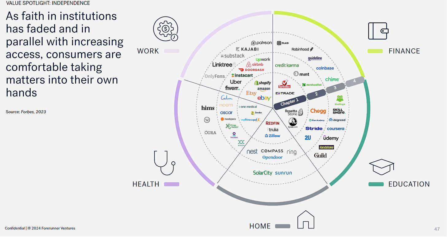Forerunner Ventures just published it’s Consumer Trend Report, and folks, it's a whirlwind of change! We've got three major value shifts—Access, Independence, and Spendthrift—shaking up how we think about consumption, with tech being a huge driver. And then there's Gen AI, sprinting ahead and redefining the game. Keep reading here.